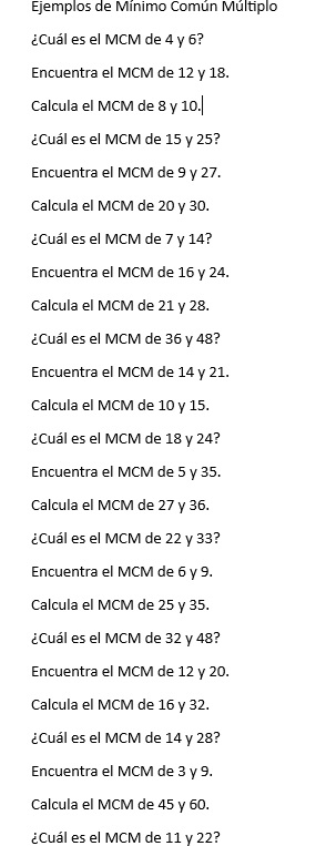 El mínimo común múltiplo (MCM) es el número entero más pequeño que es divisible por dos o más números. Para calcularlo, se pueden listar los múltiplos de cada número y encontrar el menor que tengan en común.
